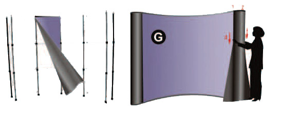 (1) Detach panels and endcaps by starting at the bottom and peeling upwards, the unhook ,Place in the case one at the time rolled with fabric/print side out.